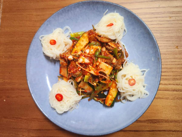 음식을 하다 보면 특히 나 같은 경우엔 최대한 집에 있는 재료로 하려고 하다 보니 어쩔 땐 더 넣어야 할 게 있는데도 자꾸 까먹는다. 오늘 한 골뱅이 비빔국수에도 양파나 파프리카를 넣어도 맛있다.